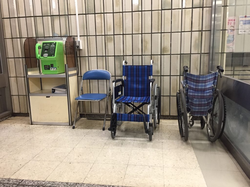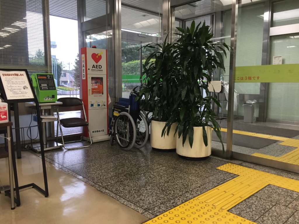 庁舎に入ってすぐの所に車椅子が設置されてます。自分にとってはここに設置されている車椅子はすごくありがたいと感じます。