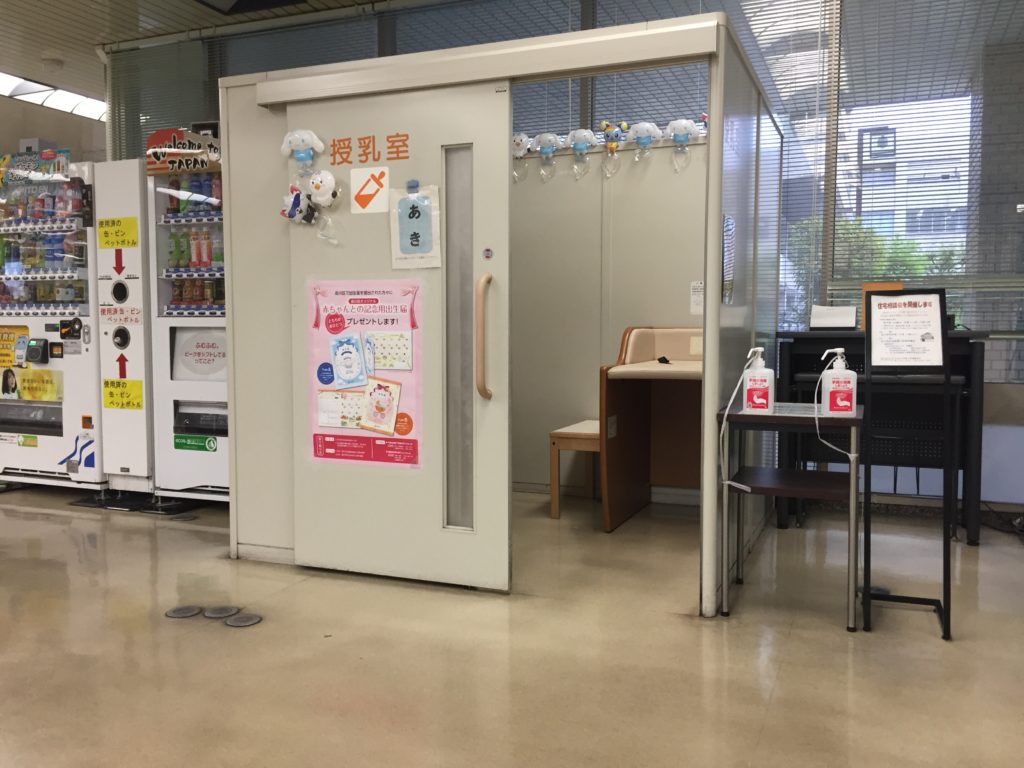 エントランス入ってすぐ右手に授乳室が設置されていました。中は確認しなかったですが、外から見るかぎりベットと椅子が設置されているのが分かります。カギは無いみたいですね!「あき」の表示をひっくり返せば「使用中」の表示になると思います。