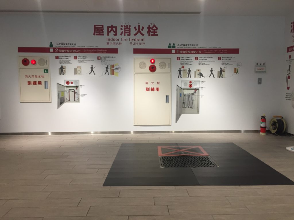 壁には、建物でよく見掛ける「屋内消火栓」の説明が書かれています。自分は体験しなかったんですけど、実際にホースを出して消火体験ができると思います。