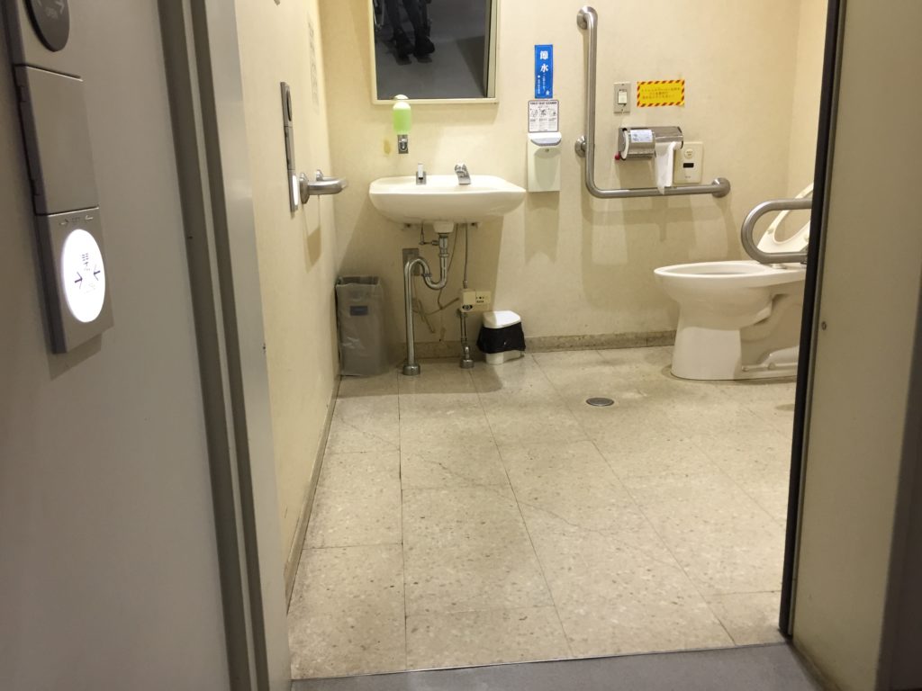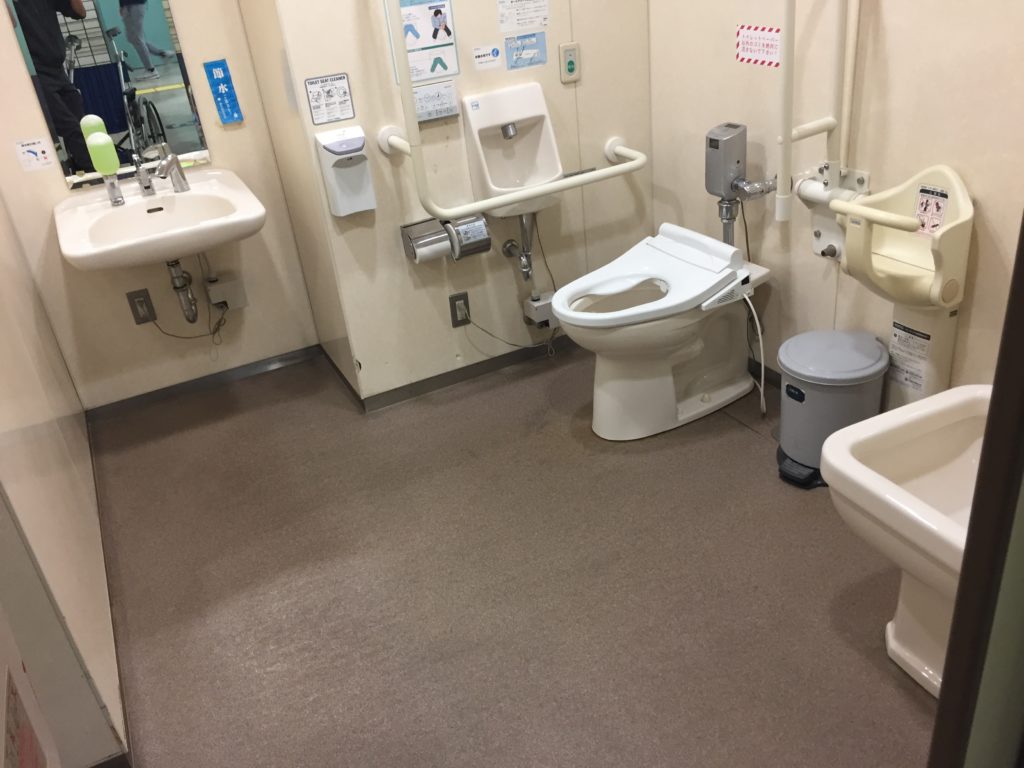 トイレ内は、比較的広く、手すり・オストメイト・赤ちゃん用の腰掛・介護用ベット(折りたたみシート)も設置されています。
