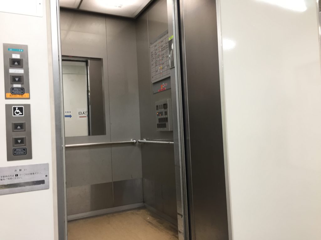 本庁舎にはエレベータが4台あります。左から2台目が車椅子対応になっていてボタンも低い位置に設置されています。エレベータ内の広さは一般用と変わらず狭い感じがしました。写真は人が少ないR2(10階)で撮影しました。*Rはルーフ意味みたいですね!